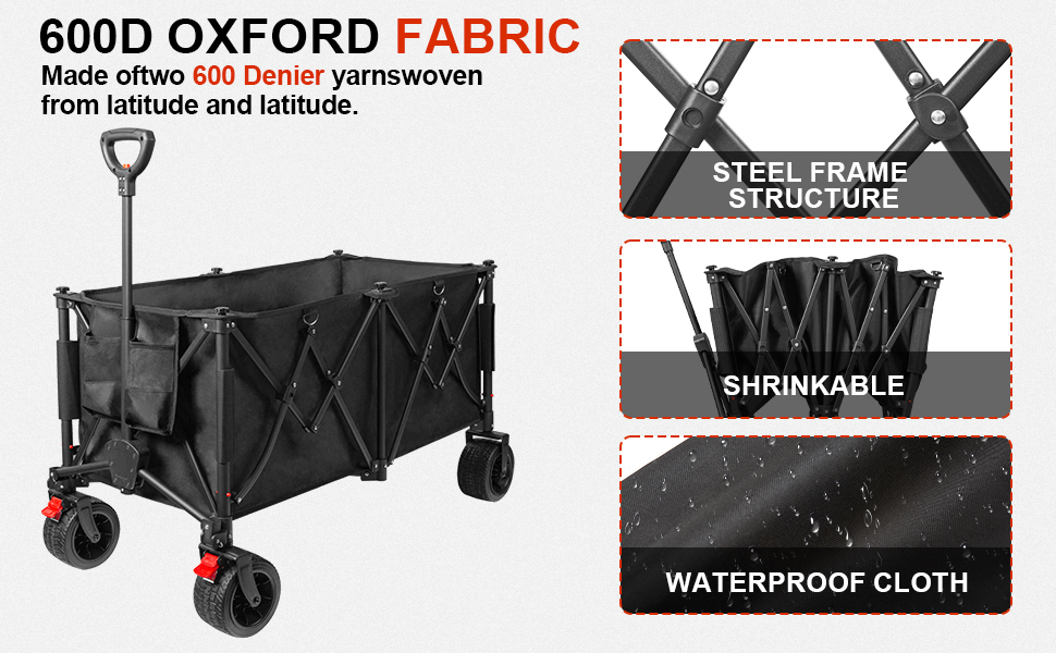 Despite its heavy-duty design, the wagon folds up surprisingly compactly for easy storage. It’s bulkier than lighter models but still fits into the trunk of most cars. The folding mechanism is smooth, and it collapses in seconds. It weighs around 30 lbs, so it’s not the lightest, but the sturdy handle and wheels make it easy to pull when folded. The large, all-terrain wheels are one of the standout features. They handle rough surfaces like gravel, dirt, grass, and even some sand with ease. The wagon is stable when fully loaded, and it turns well with its 360-degree swivel front wheels. On softer sand or uneven surfaces, it can get harder to pull, but for most outdoor tasks, it’s extremely reliable. I’ve used it for everything from transporting firewood and tools to moving bags of soil and mulch in the garden. It also works great for family outings where we bring a lot of gear. The interior space is large, and the heavy-duty fabric supports the weight without sagging. The adjustable handle and compact folding mechanism add convenience, but it’s designed for serious work.Overall, a great option for those who need a tough, reliable wagon for heavy-duty tasks.