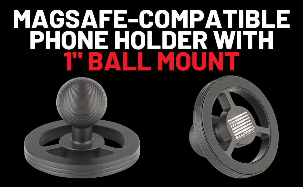 The Bulletpoint Mounting Solutions Dash Mount Magnetic Cell Phone Holder is a premium accessory designed for MagSafe iPhones and compatible with Android devices. It features a robust aluminum construction, a powerful magnet for secure phone placement, and an integrated 1-inch ball mount for versatile installation.