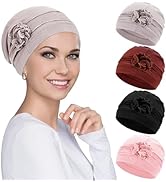 4 Pieces Chemo Headwear for Women, Turbans Cap Beanie Hat Head Wraps Hair Coverings for Women, Women's Sleep Caps Chemo Cancer Hat with Flower Design