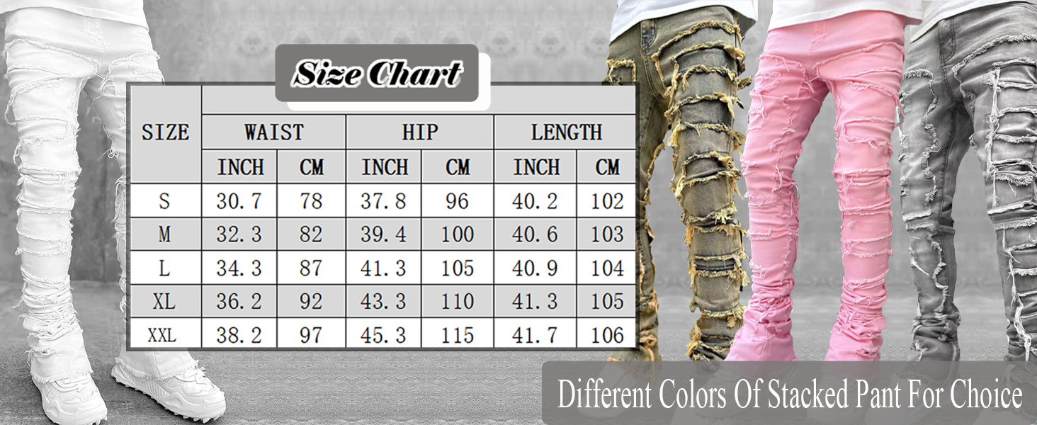 Stacked Jeans Men Skinny Ripped Jeans Slim Fit Patchwork Denim Pants Y2K Goth Harajuku Emo Hip Hop Jeans Trouser