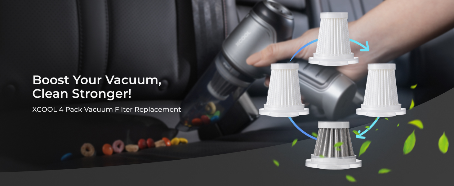 This 4-pack vacuum filter set includes three HEPA filters and one steel filter, all washable and reusable, designed exclusively for the xCool Cordless Handheld Vacuum. Engineered with a pleated design, these filters capture over 99.5% of particles as small as 0.3 microns, ensuring superior air quality and extended vacuum lifespan. The set offers a cost-effective, eco-friendly solution to maintain peak vacuum performance for up to a year.