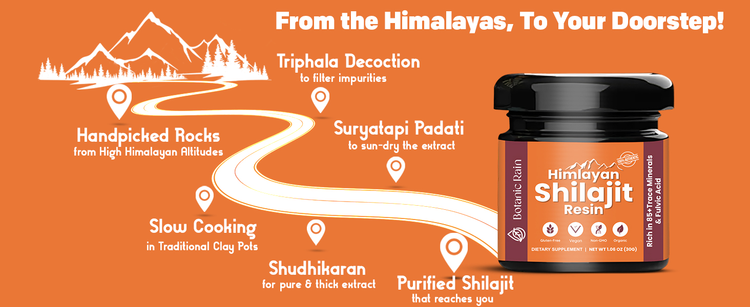 Botanic Rain's Pure Himalayan Shilajit Resin is a premium, 100% organic product sourced from the pristine Himalayan Mountains. Packed with over 85 trace minerals and 75%+ fulvic acid, this ancient superfood supports energy, vitality, and immune health. Ethically sourced and gluten-free, it's the perfect addition to any wellness routine.