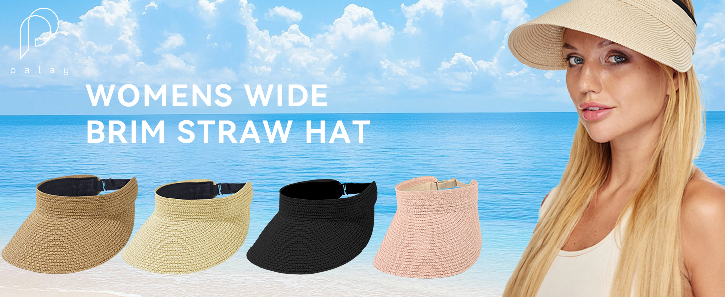 Straw Hat Sun Hats for Women,Wide Brim Cap Beach Hat for Women Stylish UV Protection Cap,Summer Packable Travel Sun Visor Hat - UPF 50+