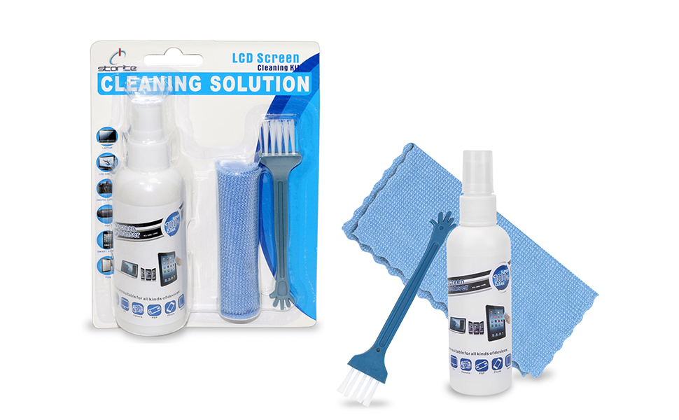 The Storite 3 in 1 Cleaning Kit combines a 100ml professional-grade cleaning solution, a reusable microfiber cloth, and a soft brush to deliver fast, streak-free cleaning for all your electronic screens and keyboards. Designed to prevent static electricity and safe for LCD, LED, and mobile devices, this eco-conscious kit ensures your tech stays spotless and pristine with minimal effort.