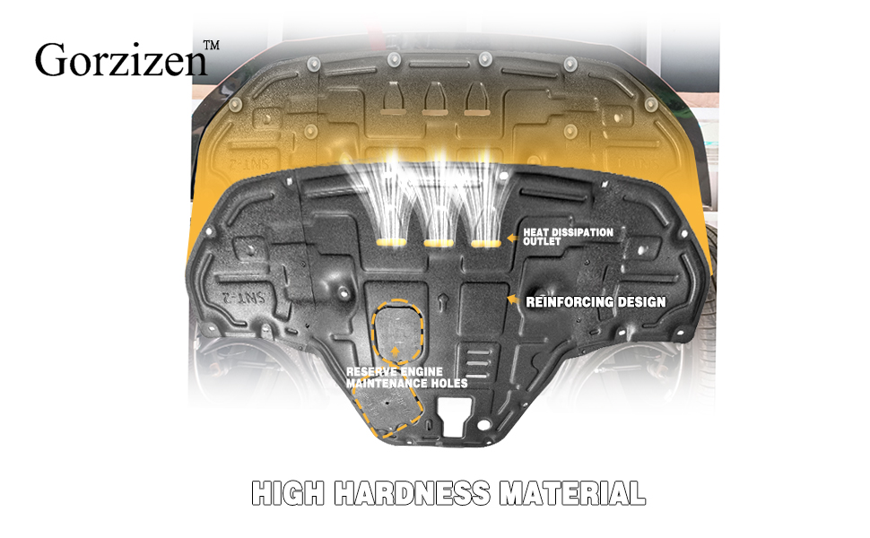 The Gorzizen Engine Splash Shield is a heavy-duty, precision-fit undercarriage guard designed for Hyundai Sonata models from 2020 to 2023. Made from durable plastic steel, it offers triple the thickness of the original shield, providing enhanced protection against road debris and environmental damage. Its wider coverage and maintenance-friendly design ensure your engine stays safe without compromising service convenience. Easy to install with included screws, this shield is the ultimate upgrade for Sonata owners who demand lasting engine defense.