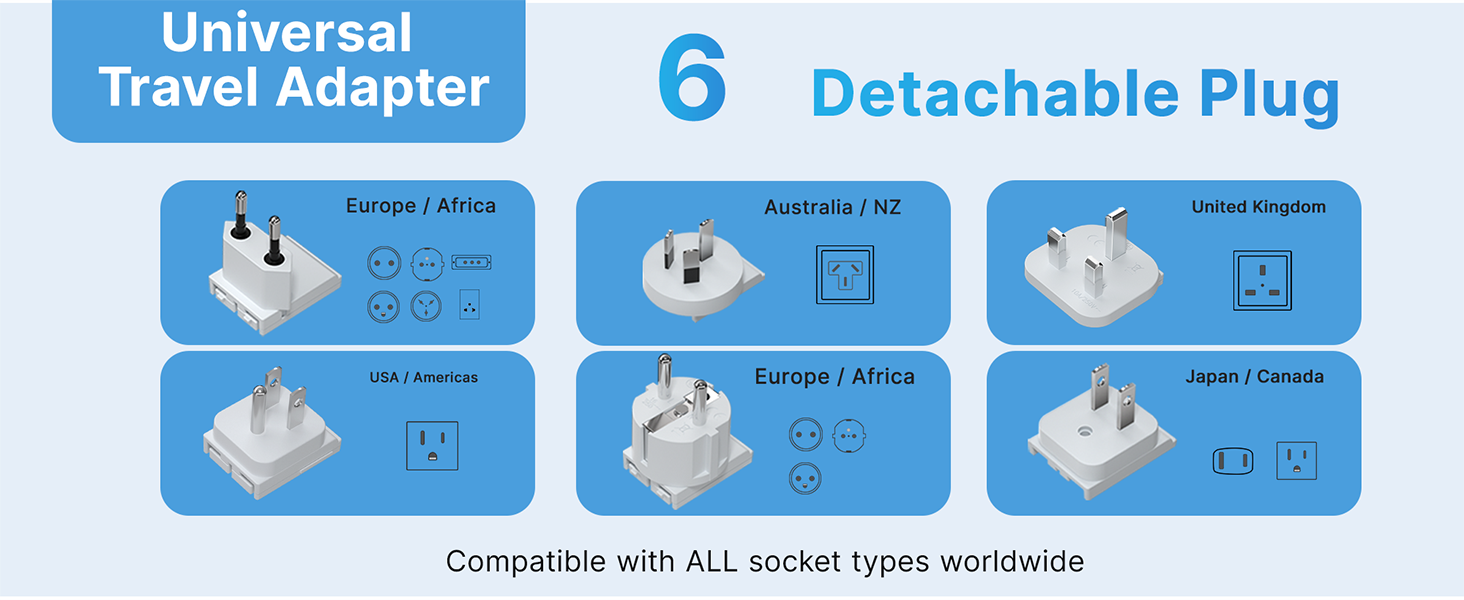 I recently traveled to Vietnam and Cambodia where I needed adapters for 4 different electrical sockets, and this fit the bill – it included an adapter for every socket.. The only downside is that it's not compact, but it comes with a convenient drawstring travel bag for the main unit and all 8 adapters.