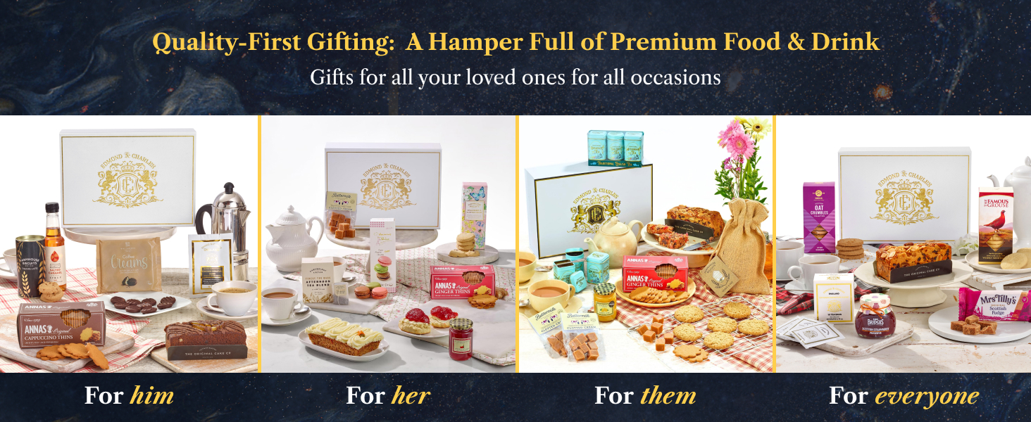 The Edmond & Charles Luxury Afternoon Tea Hamper for 2 is a 1.5kg curated collection of premium British teas, fruit cake, lemon curd, clotted cream fudge, ginger thins, and gourmet biscuits. Packaged in an elegant white and gold box, this hamper offers a refined gifting experience with a minimum 3-month freshness guarantee, perfect for couples celebrating special moments.