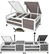 The Ketive Large Wooden Tortoise Habitat offers a spacious 37x23x32 inch enclosure made from durable natural fir wood, featuring impact-resistant acrylic panels and a no-leak sliding tray for easy cleaning. Designed for both indoor and outdoor use, it includes weather-resistant hide boxes and an openable roof for effortless maintenance, promoting natural tortoise behaviors and health.