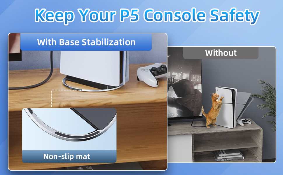 This stand is sleek and incredibly helpful for keeping my console stable and upright. It was easy to attach, and it feels super secure even if someone bumps the shelf. The added airflow around the console helps with heat control, especially during long gaming sessions. It doesn’t take up extra space and keeps the setup looking clean. Great little upgrade for any PS5 owner.