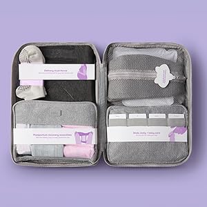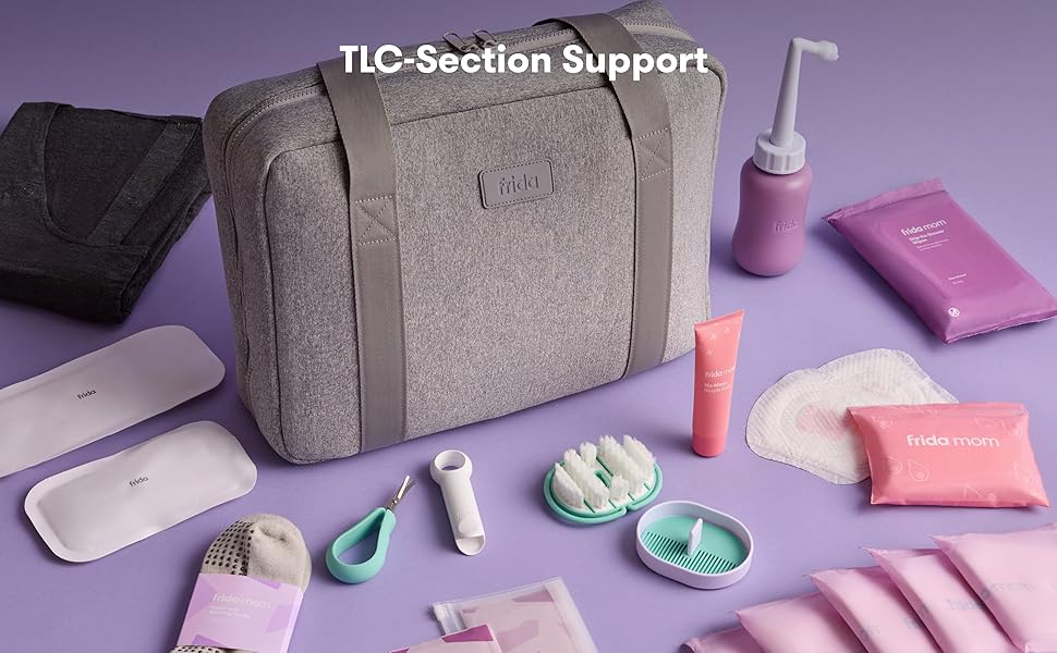 Frida Mom’s 50-piece pre-packed hospital and diaper bag kit is expertly curated for c-section delivery, postpartum recovery, and newborn care. Featuring neoprene material, removable toiletry bags, and a suitcase strap, it offers organized convenience and versatile use from hospital to everyday mom life.